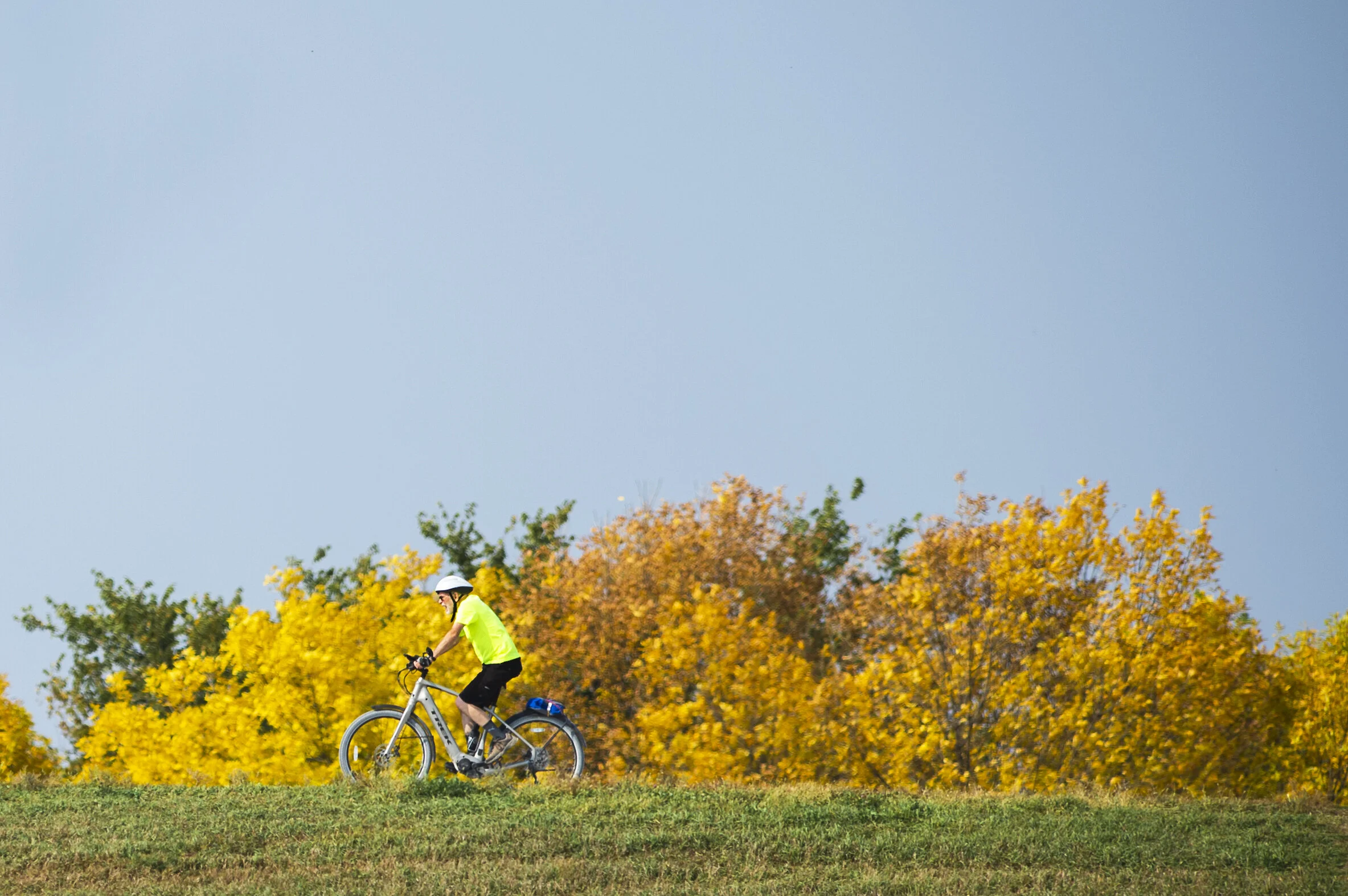 A biker streaks past a plume of colorful leaves at Holmes Lake on Thursday, October 8, 2020, in Lincoln, Nebraska. KENNETH FERRIERA, Journal Star